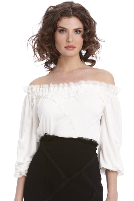 > Slashed Frayed Off Shoulder Jersey Tee